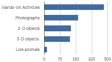 What kinds of traveling exhibits are there? A lot. The Traveling Exhibitions Database (TED) is a database of 768 current traveling exhibitions which are available to U.S. museums. Here’s how they are distributed by category: