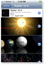 Exoplanet is a database of all known extrasolar planets. The free app has been downloaded approximately 1 million times. It was created by Hanno Rein, a 27-year-old astronomer who works on extrasolar planets at the Institute for Advanced Study. Dr. Rein was inspired by “playing with my new iPhone,” and after 2 evenings designing an app, and another 2 weeks of programming, he released a very simple app in Aug 2009. Dr. Rein has actively worked on it one or two nights per week ever since, continually improving the app. His audience is “science-interested people, as well as amateur and professional astronomers.” (iTunes link)