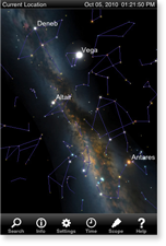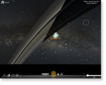 Luminos is another astronomy app for the iPad. It is similar to SkySafari, but also allows the user to travel around the solar system, looking at stars and planets from many viewpoints. (The screenshot at right is a view through the rings of Saturn.) The $10 app launched in December 2010. Developer John Stephen is in his mid-40s. He says, “[I have] written commercial software my entire career for companies like Adobe, Apple and Microsoft, but this is my first major self-published app.” He became interested in amateur astronomy around 10 years ago, and as a hobby worked on software to control his own telescope. When Apple announced the iPad in early 2010, he was inspired by the touch interface and the App Store business model. Using his old code as a starting point, he started planning the app in March 2010, started coding in May, and was done 6 months later. His only cost was a MacBook Pro for authoring the software; his partner created his user’s guide, and his brother helped with testing and market research. Mr. Stephen has not invested in advertising, and has not had success with small-scale promotion via forums and blogs. For the first 2 months, he sold only 2-3 copies of the app per day. Meanwhile, he worked on several improvements. He says, “[It was not until] Apple featured my app in the New and Noteworthy section that my sales really took off.” He says that if he can sustain his current sales rate, it will generate a nice income. However, it’s not enough income to support more than one person. He has tried putting the app on sale (20% off) a few times, but that had no significant change in units sold. Mr. Stephen designed the app for a broad audience, with technical features for amateur astronomers, and an appealing and intuitive interface that families can enjoy. (iTunes link)