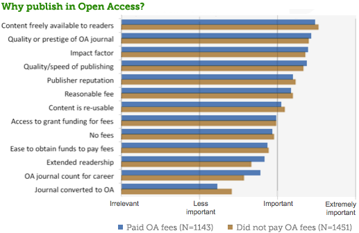 Regardless of whether scholars pay a fee or not, they tend to value the same benefits of open access journals: