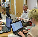 Since summer 2010, there have been nine volunteer interns (e.g., a grad student) or staff given the job title “Wikipedian-in-Residence.” (Four are in the photo at right.) The title is useful for the intern or staff person because it defines their job, and helps them build collaborations with other Wikipedians.