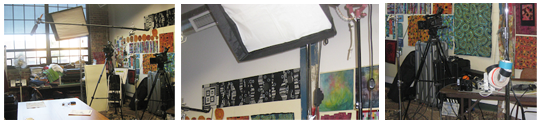 The knitting courses have a shorter production cycle. Courses are planned by the instructors, who typically work in the craft field as authors and teachers. Instructor Linda Permann said it took her a few months to outline and develop her course. Once the course is developed, there is a ~3-day video shoot (using HD video) with the Craftsy team and a film crew. Professional video editors produce finished videos. Above is the studio of Carol Ann Waugh during a Craftsy filming.