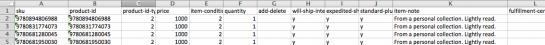 - product-id-type – this explains what the “id” is. Put a “2” in this column, that means “ISBN”