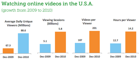 Online video gained momentum in 2010, says a recent report from comScore. Compare 2009 and 2010: